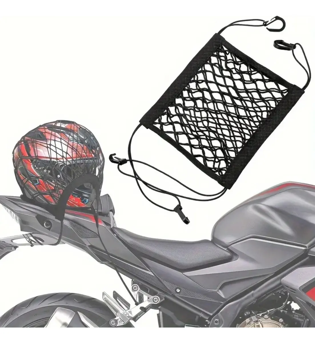 Feita com elástico de alta qualidade e acabamento reforçado, a redinha se adapta facilmente a qualquer modelo de moto. Seus ganchos resistentes garantem uma fixação prática e rápida, evitando que a carga se mova ou caia durante a viagem.